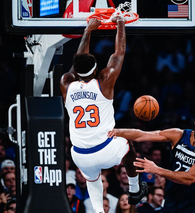 在最近的一场比赛中,尼克斯队以134-98血虐了篮网队36分,在这一场比赛中,尼克斯队首节便以18分的净胜分(40-22)奠定了胜局,首发五虎中的布伦森+汤神+布里奇斯+阿努诺比都在半场时间里,高效砍下了15+的得分,不过,最令人钦佩的应该是首发五号位的米切尔-罗宾逊。