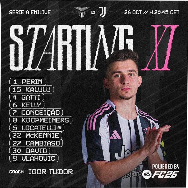 尤文首发:1-佩林、15-卡卢卢、4-加蒂、6-凯利、7-孔塞桑、8-库普梅纳斯、5-洛卡特利、22-麦肯尼、27-坎比亚索、30-戴维、9-弗拉霍维奇