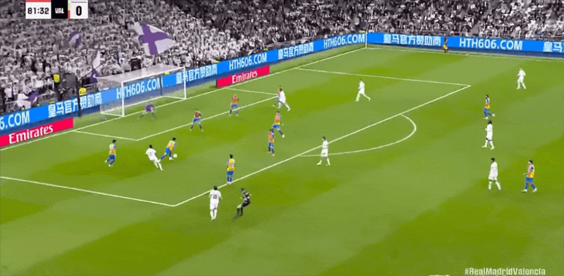 雷速体育11月2日讯 西甲联赛第11轮皇马对阵瓦伦西亚,比赛第82分钟,皇马新援左后卫卡雷拉斯在边路小角度轰出一记世界波直挂死角,帮助皇马取得4-0的领先。这也是卡雷拉斯自今夏加盟皇马以来的首粒进球。